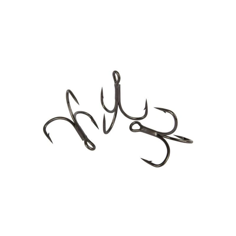 De haken zijn afgewerkt met een mat zwarte nickel coating, wat niet alleen zorgt voor minder reflectie, maar door de gladheid dringt de haak ook beter door. Dankzij hun extra wijde haakbocht behouden ze hun grip uitstekend.