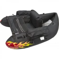 De Seven Bass Design One Devil is een belly boat die geschikt is voor de meeste lichaamstypen tot 136kg. Deze float tube is uitgevoerd in het zwart met stoere opdruk van vlammen. Door de V Vorm is de waterbestendigheid bij het vooruit gaan aanzienlijk vergroot doordat de boot voorin wat hoger staat. Daarnaast is het daarom ook zeer makkelijk om te manouvreren met deze boot. Deze V Vorm wordt gecreerd door 2 afzonderlijke luchtkamers met veiliheids ventielen. De opblaasbare zitting en rugleuning hebben 2 riemen waardoor ze te verstellen zijn voor een comfortabele zit. Verschillende metalen D ringen maken het mogelijk om accessoires te bevestigen. De zijtassen zijn zeer handig voor het opbergen van al je kunstaas en accessoires. Uitgevoerd met een meetlat in cm aan de voorzijde, ook handig voor bijvoorbeeld je shads op te leggen zonder dat ze het water in vallen.