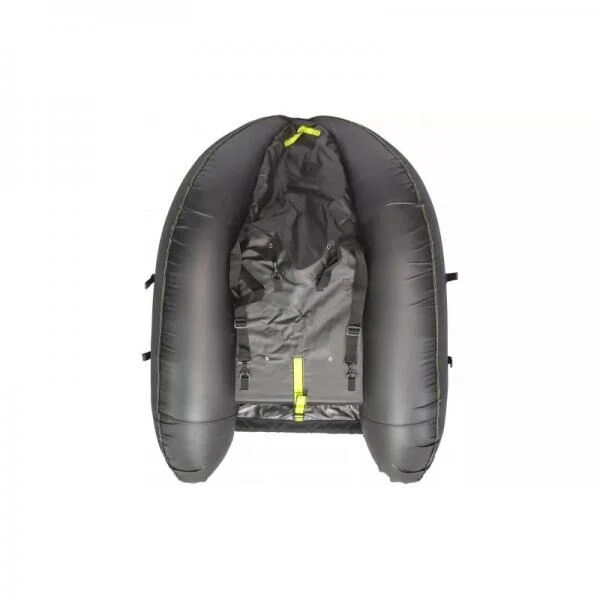 Het heeft een schuimrubberen zitting en rugleuning. Comfortabel zittend boven het waterniveau zult je genieten van je visfeesten. Twee verstelbare banden passen de helling van de rugleuning aan aan alle morfologieën. De zeer uitgesproken V-vorm vermindert de waterweerstand bij het oprukken en verbetert de wendbaarheid van de vlotterbuis aanzienlijk. Deze “V’s” bestaan uit onafhankelijke luchtkamers die zijn uitgerust met veiligheidskleppen en individueel worden opgeblazen voor maximale veiligheid. Het gehele watercontactvlak is gemaakt van zeer dik PVC-weefsel voor een betere glijwerking. De visser profiteert van een opbergruimte achter de zitting die perfect plaats biedt aan een waterdichte tas.